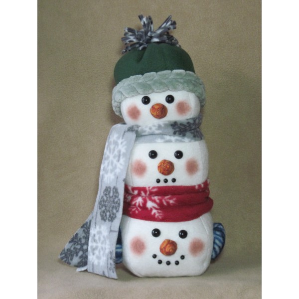 Pattern to make three snowmen in one! Made of plush felt & weighted for stability, this "trio" measures 15" tall, 6" wide, & 6" deep.
