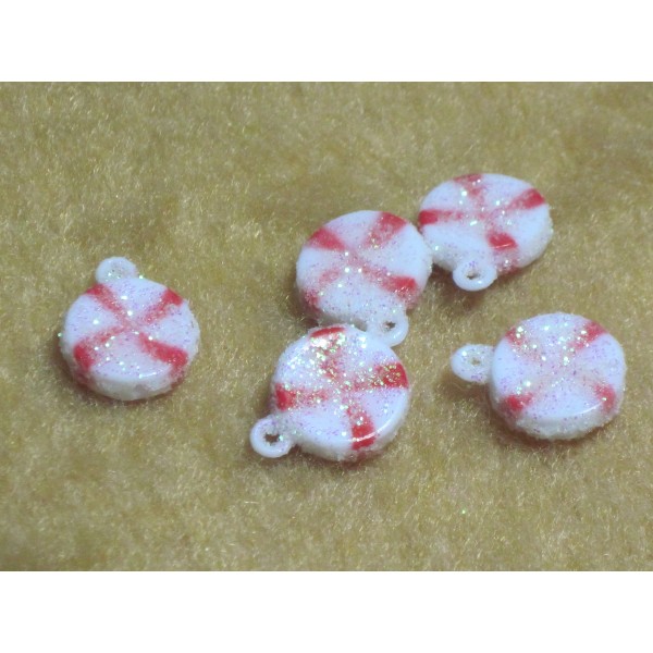 7/16" glittered peppermint candies. Sold in sets of 5 for $1.25.