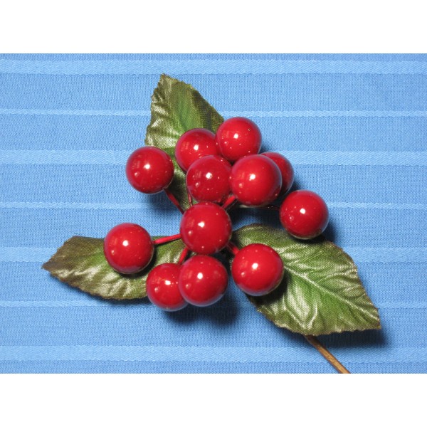 Craft pick containing 1 dozen red berries. Each berry is 1/2" in diameter.
