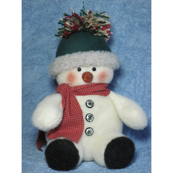 This snuggly snowman is all tuckered out from playing in the snow & is taking a break! The finished product measures 9" tall, 7" wide, & 5" deep.
